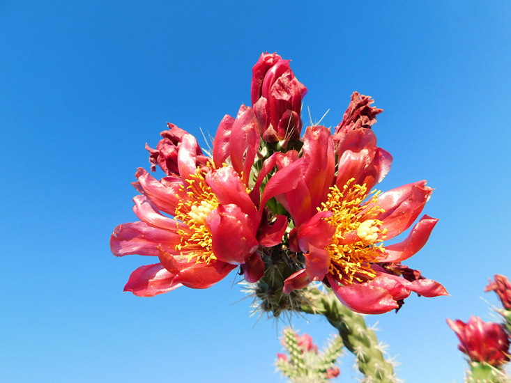 I made camp at one of my favorite spots nearby, then the next morning I photographed more cholla blossoms ... but what's that odd silhouette in the background?