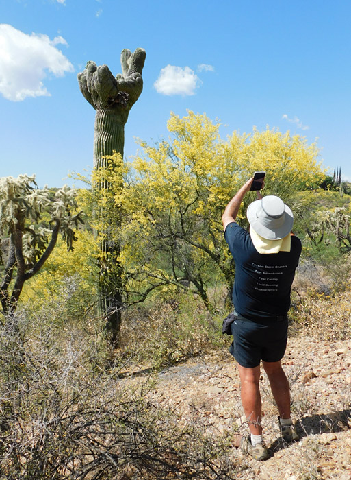 We took a different ridge back down, passing this Y-split saguaro that Bob and Pat had photographed in 2008: