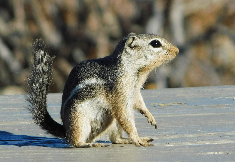An antelope squirrel inspected my picnic table for any crumbs left over from my breakfast: