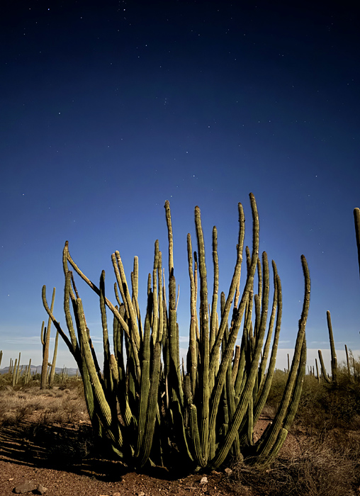 So ended another visit to one of my favorite places. In many ways, I had experienced the best of both worlds: day and night, sunlight and moonlight, heat and cool, mountains and valleys — and crested saguaros and crested organ pipes!