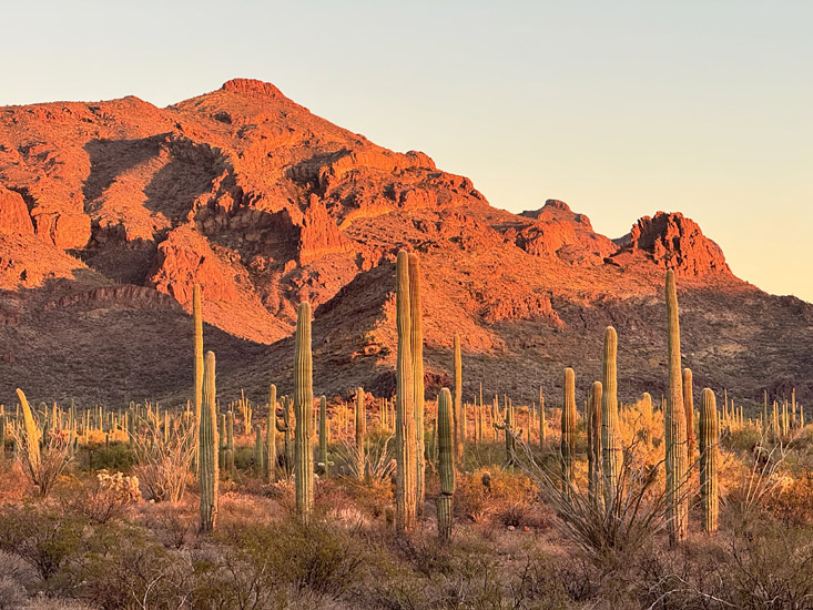 From my campsite (now in the monument's main campground), I wondered how many times over the years I've taken this same photo — the day's last light on the distant Ajo Mountains: