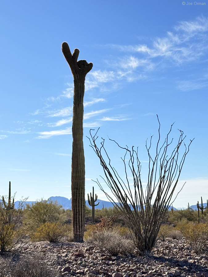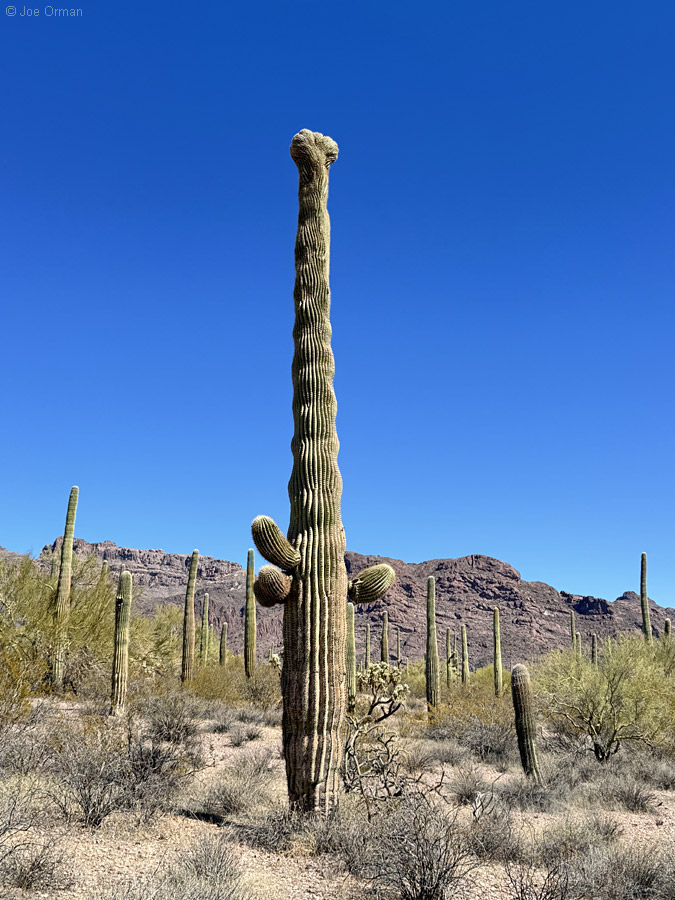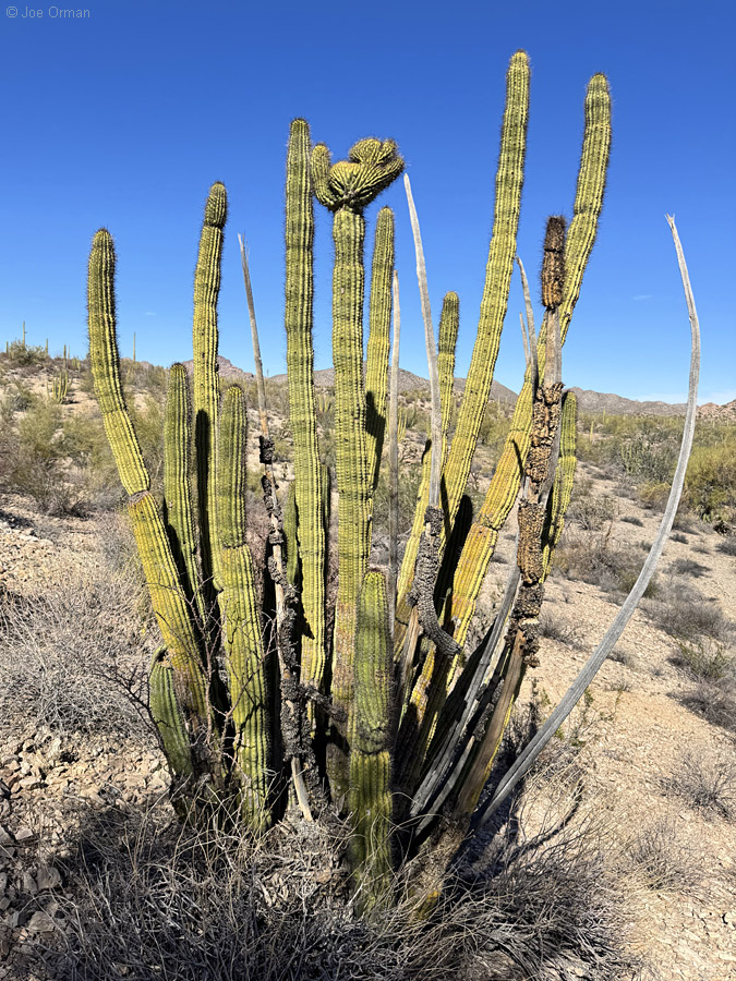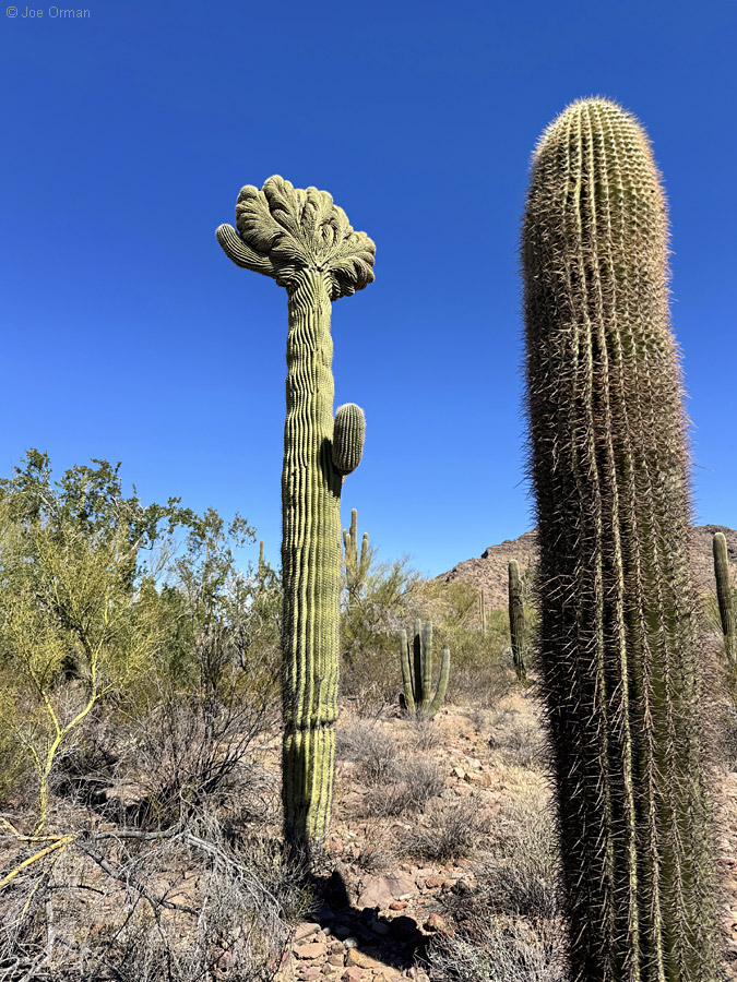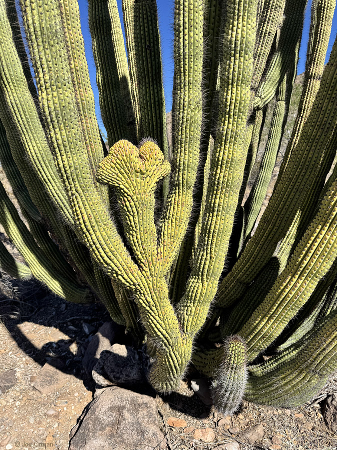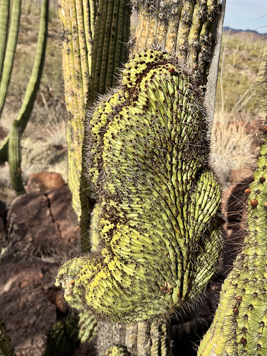 But the heat wave had subsided, and the weather was now perfect for desert hiking. I was determined to find one last crested organ pipe, and I succeeded: