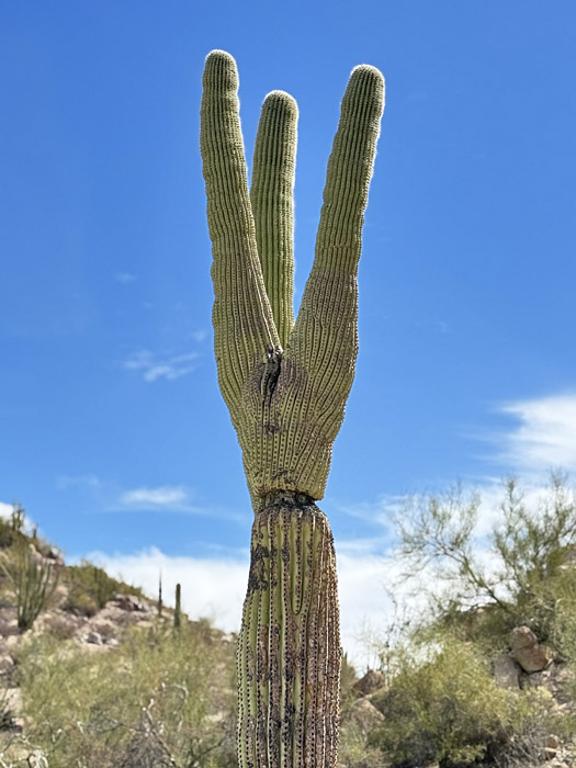 As my hike progressed, I was teased by Y-split saguaros: