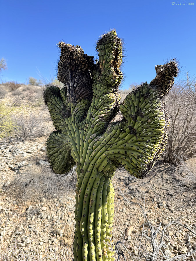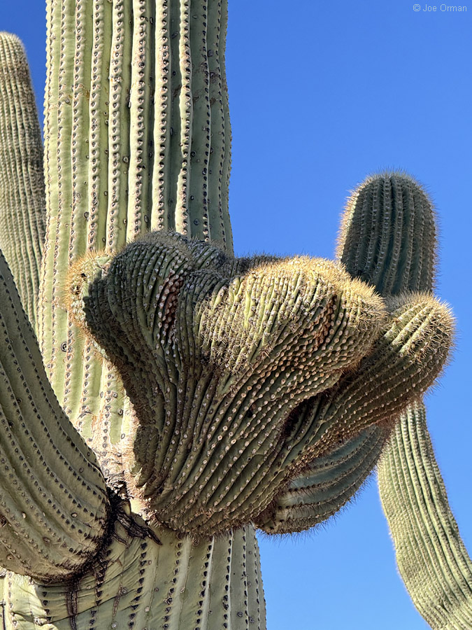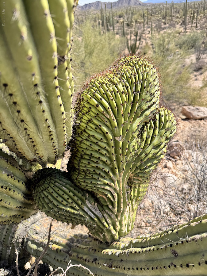 As I made my way across the valley, I happened to pass a saguaro with an arm crest: