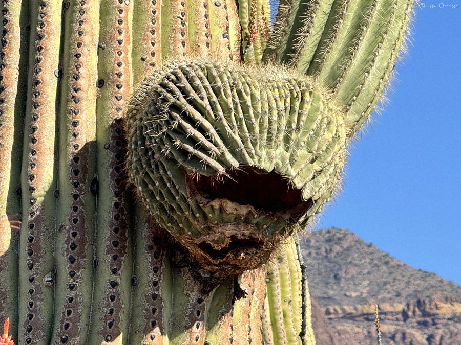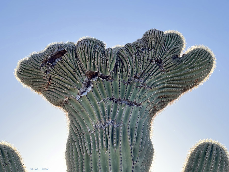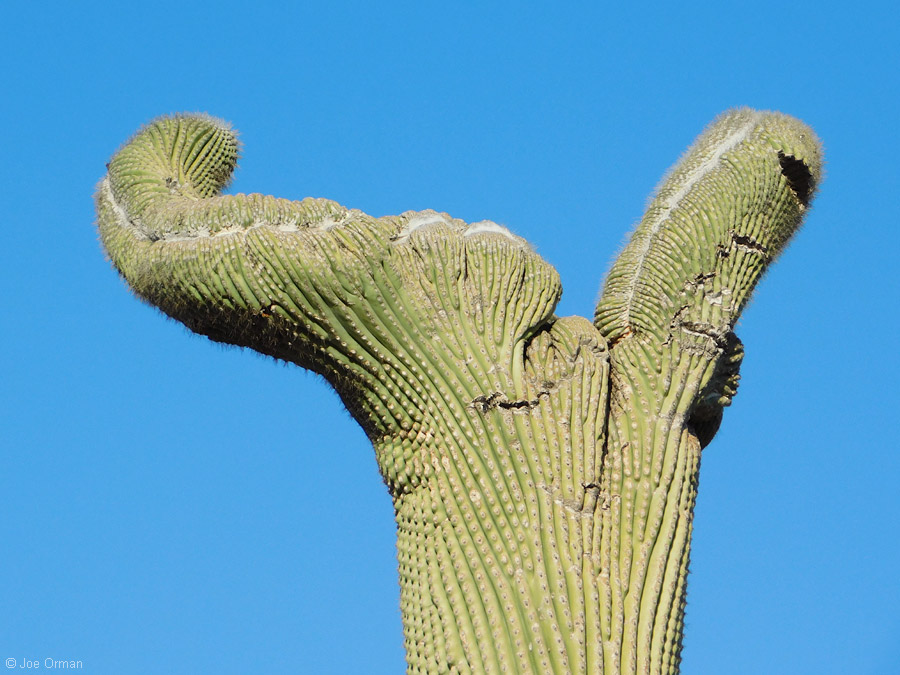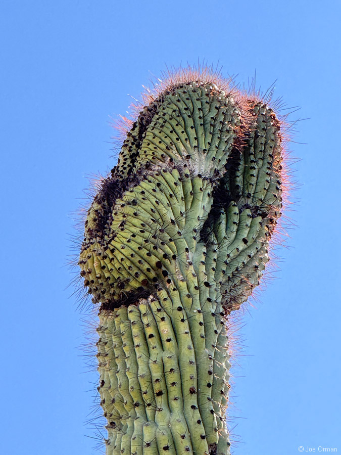 One of my traditions is to stop on the way out of the campground to take an updated photo of this little crest on top of a tall saguaro: