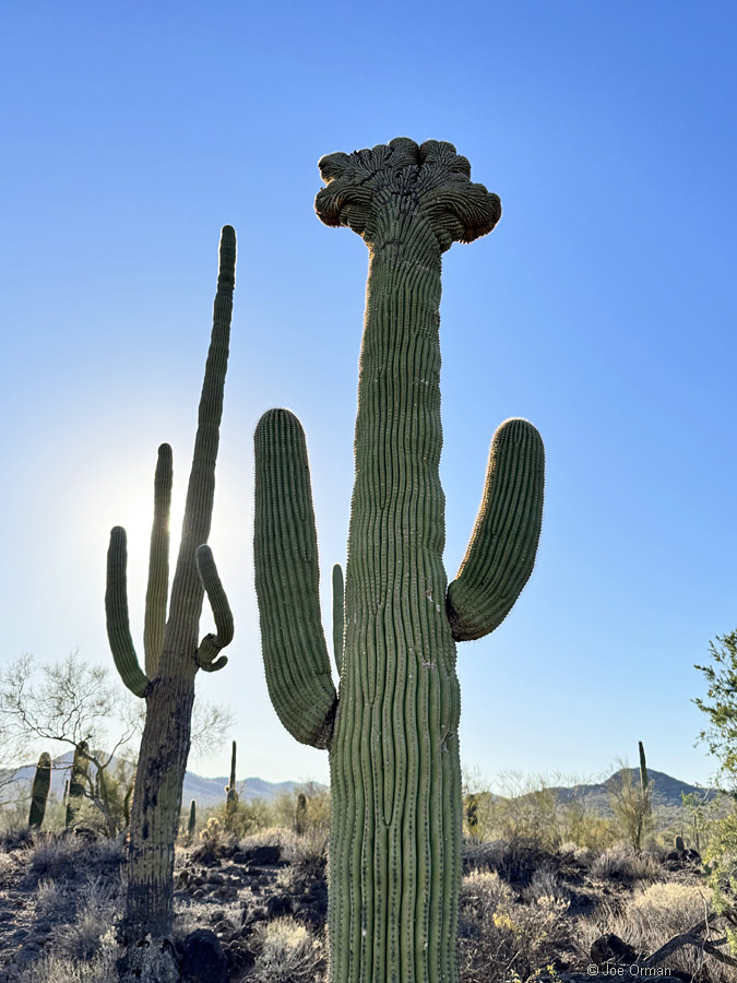 After finishing the loop road, I still had enough daylight left for a short loop hike off of the highway to check up on four known crested saguaros. First was "Queen of the Mountain":