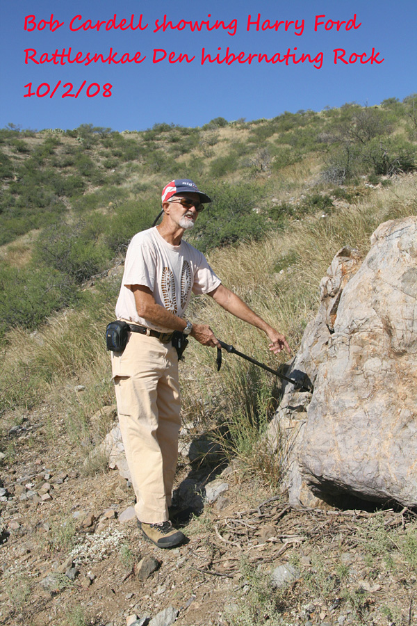 Bob Cardell showing Harry Ford rattlesnake hibernating den rock - 10/2/2008 Photo courtesy of Harry Ford