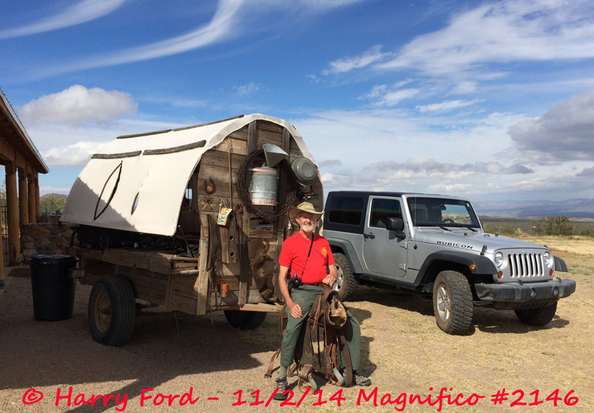 Bob Cardell with chuck wagon and Jeep - 11/2/2014 Photo courtesy of Harry Ford