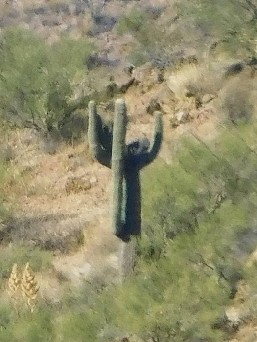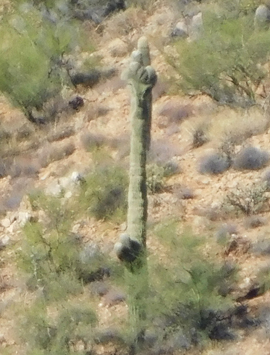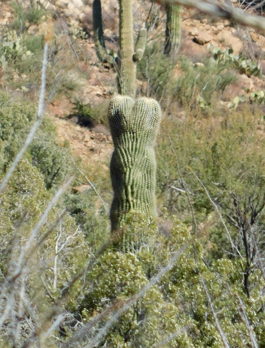 Next, I drove a nearby ranch road up a hill to take a look around ... this suspicious saguaro caught my attention, but again, no seam so "not quite crested":