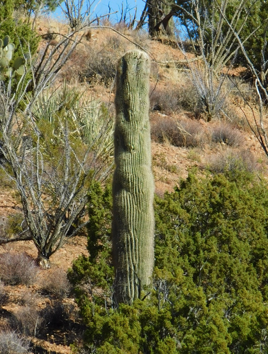 Just up the same road, I took an updated photo of this saguaro.  In the same 5 years, it's gone from "looks like it's cresting" to clearly just a "Y-split"  so I've taken it off the CSS web site: