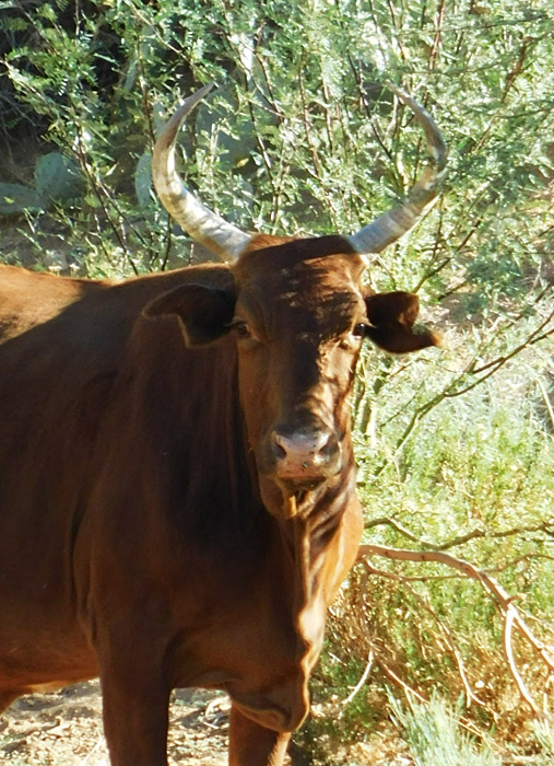 Then it was back down the highway to a different side road, hoping to find three undocumented crested saguaros that Harry Ford had gotten a tip on.  The first side-road-off-a-side-road I tried turned up nothing; the wild burros laughed at my foolishness: