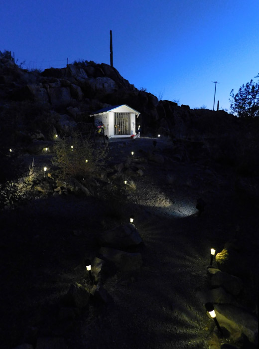 Driving the winding highway home as twilight fell, I made one last discovery  a new roadside shrine which was lit by solar-powered lights: