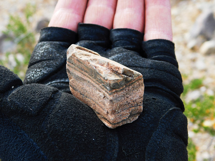 And as usual, I looked for interesting rocks. The colorful bands on this one caught my attention: