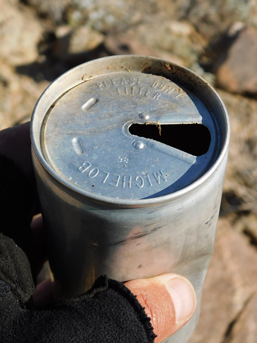 I collected any trash I came upon, including this pull-tab beer can. According to my research, in the USA the last pull-tab cans were produced in 1983; amazing to think that this can has been sitting here for 40 years!