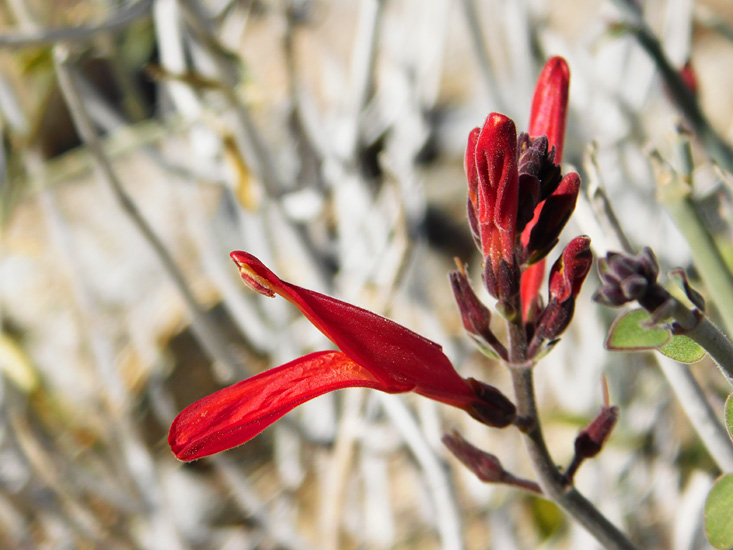 The next day, I returned to the bajada and continued my pincushion hunt. The only other wildflower I saw was this chuparosa: