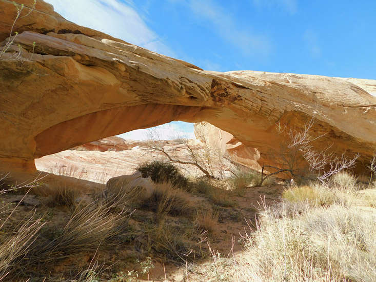 After arriving back at my Jeep, before making another camp under desert skies, I made one last stop where I could look down into another canyon nearby.  I spotted an arm crest far below, took this telephoto shot, and vowed to hike down to it one day: