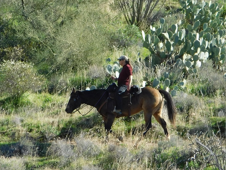 From the trail, our views reached all the way from the horse riders in the foreground to the distant Four Peaks: