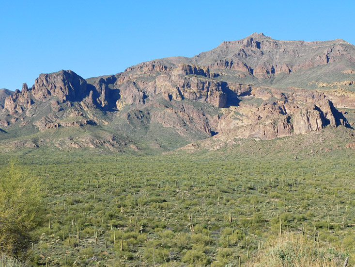 Back at the Jeep, I paused to look out over the saguaro forest we'd just hiked, stretching to the magnificent mountain range beyond: