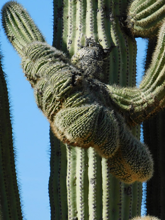 I followed more back roads without spotting any crests, but I did find this odd many-armed saguaro:
