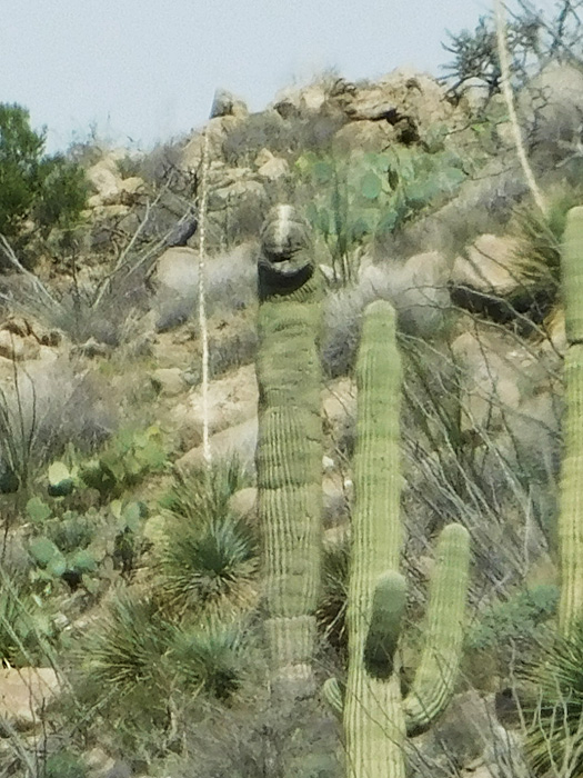 As I hiked around the area, I found this rare triplet (shared-root) saguaro: