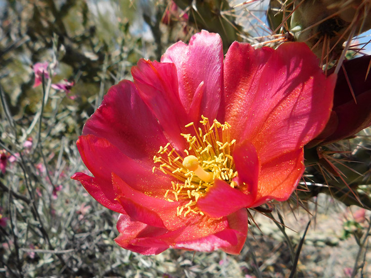 I then entered Saguaro National Park, where I took a short hike just off the road.  Here, the smaller cactus were nicely in bloom.  Prickly pear:
