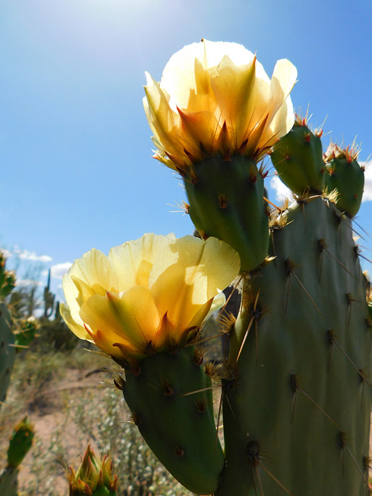 As I continued my drive, I soon entered Tucson Mountain Park and took a longer hike from the road.  I saw more prickly pears in bloom:
