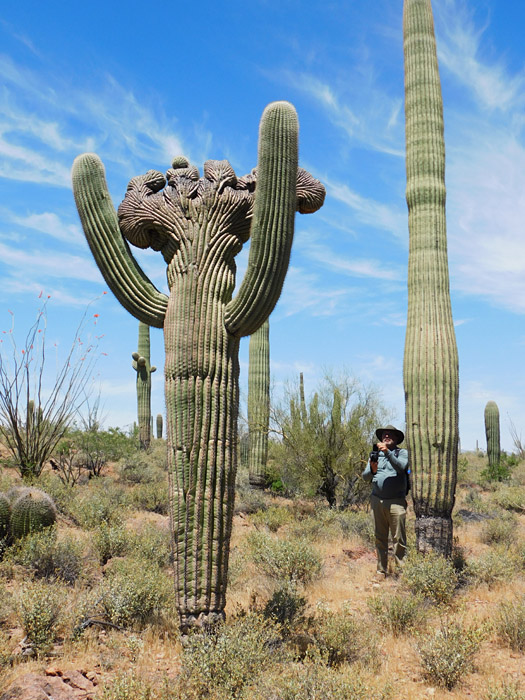 The next morning, as I drove away from the campground, I noticed a newly-crested saguaro just off the road.  I parked, ran over to it, and did my duty — documented it!
