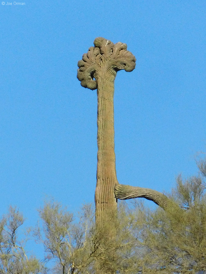 ... and here's another updated telephoto shot of a crested saguaro on private property (many years ago, Joe P. told me he'd gotten run off by the landowner!):