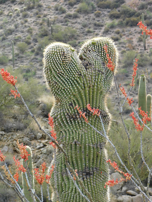 Back on the road, I was lucky I spotted this arm crest hiding among the other arms of the saguaro: