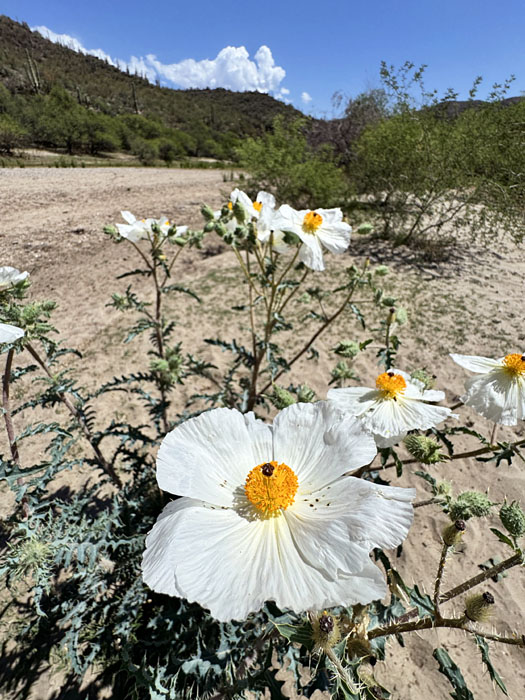 I reached the river and started to hike ... this White Prickly Poppy caught my eye: