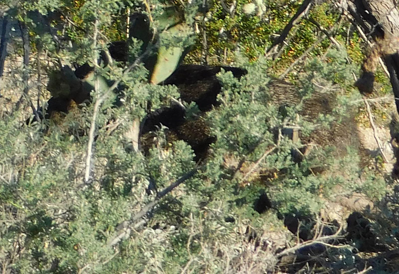 As I continued hiking cross-country, I startled a couple of javelina, who really took off running. One of them even bounded over the vegetation in great leaps the first time I'd seen that behavior! They were gone so fast this is the only photo I could get:
