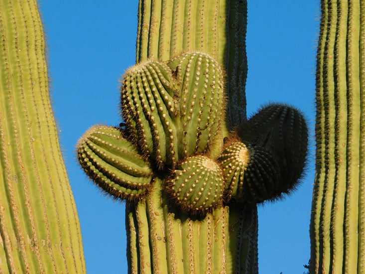 I arrived in the northern outskirts of the Tucson metro area in mid-afternoon, and decided to take a hike in one of the local preserves. After about a mile afoot, I easily located this short crested saguaro I'd gotten a tip on: