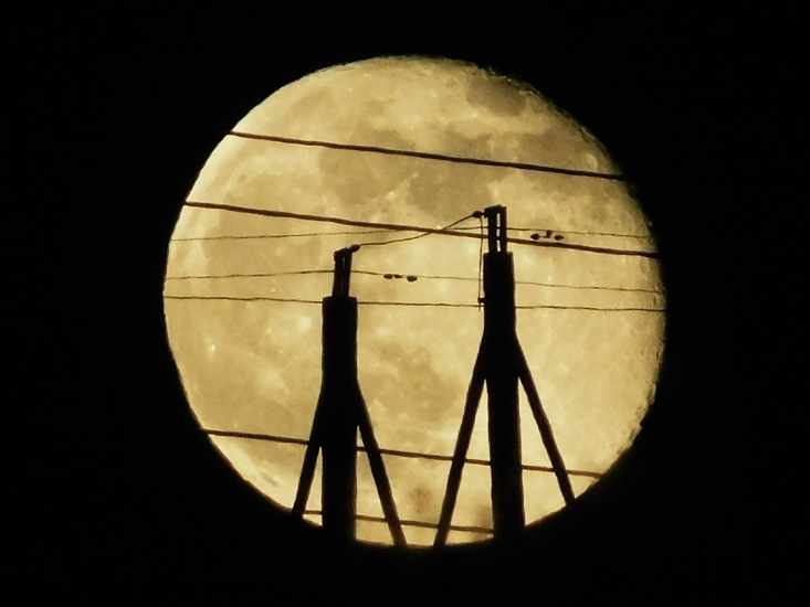 After returning to my vehicle, I drove to a nearby spot in the desert where I'd camped several times before. As I cooked my dinner, the moon rose behind the nearby power lines: