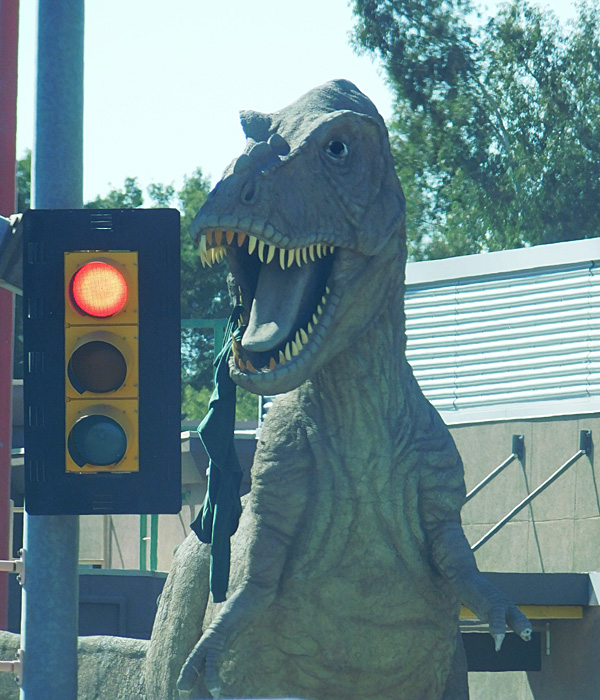 It had been 16 years since I'd photographed this roadside dinosaur, so I snapped a pic while waiting at the light: