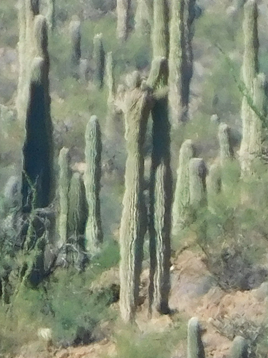 From there, my binoculars could pick out another crested saguaro in the distance that I'd visited 5 years earlier. It was at the limit of my telephoto lens:
