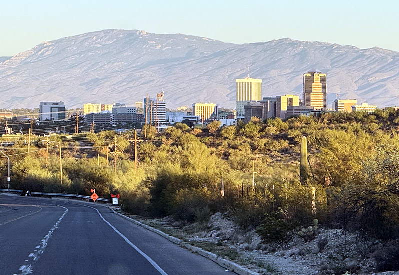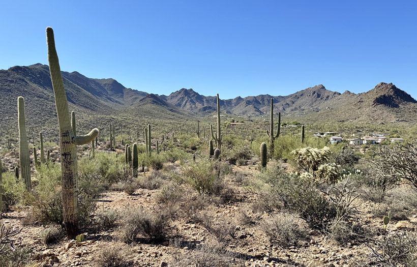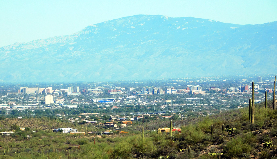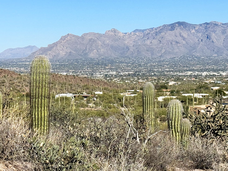 ... and its juvenile cousins framed the view across north Tucson to the distant Pusch Ridge: