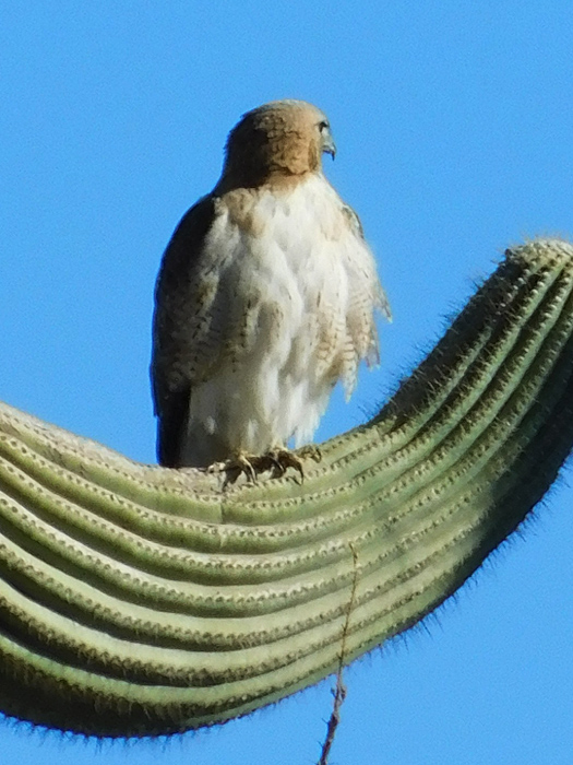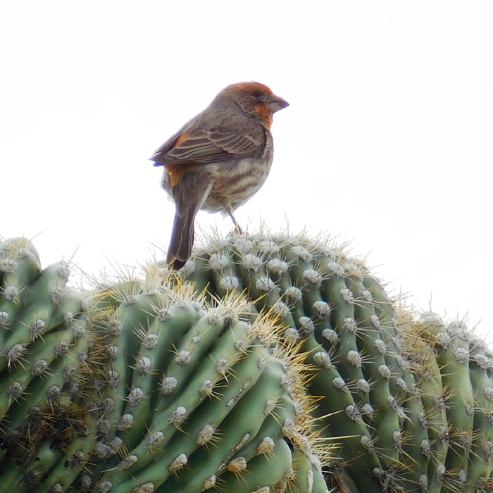 While I was photographing the saguaro, a house finch perched on top of the crest: