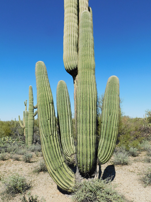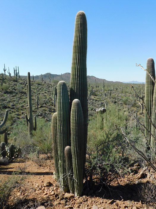 We noticed this shared-root saguaro just up the hillside ... not a twin or triplet, but six trunks that perhaps share roots!