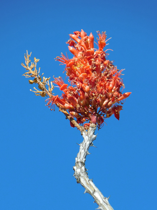 I took a bearing and hiked toward it. On the way, I saw a few ocotillo blossoms: