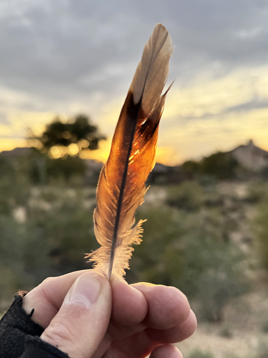 On the short walk back to my vehicle, I used the last rays of the disappearing sun to illuminate this feather: