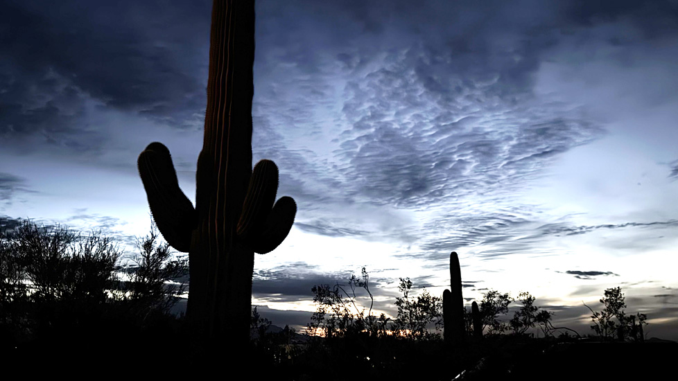 The next morning I met Harry and Mick for a couple of hikes in Saguaro National Park. The primary objective of our first hike was this small top crest — a tip I'd gotten from an online video: