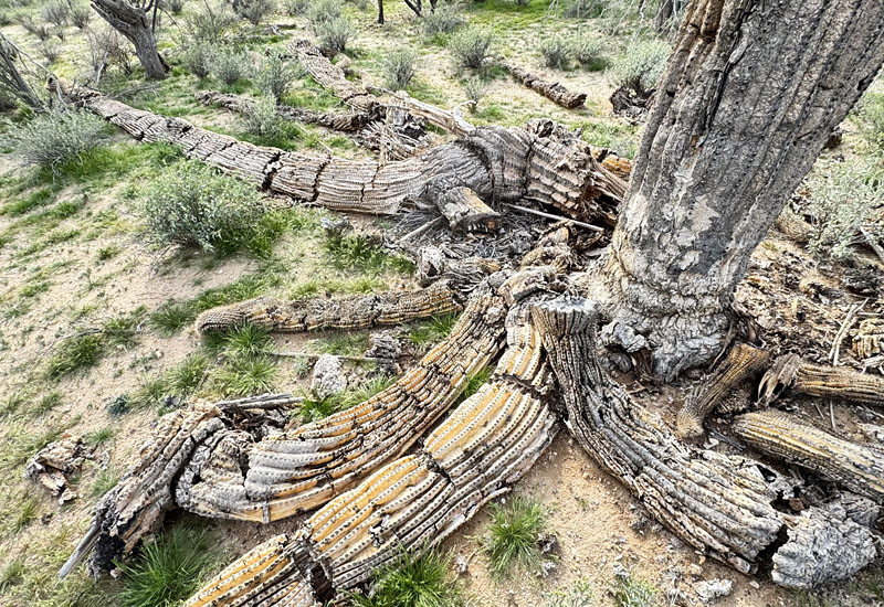 Continuing my walk, I found what I call an "octopus" saguaro — dead, with multiple collapsed arms splayed in all directions: