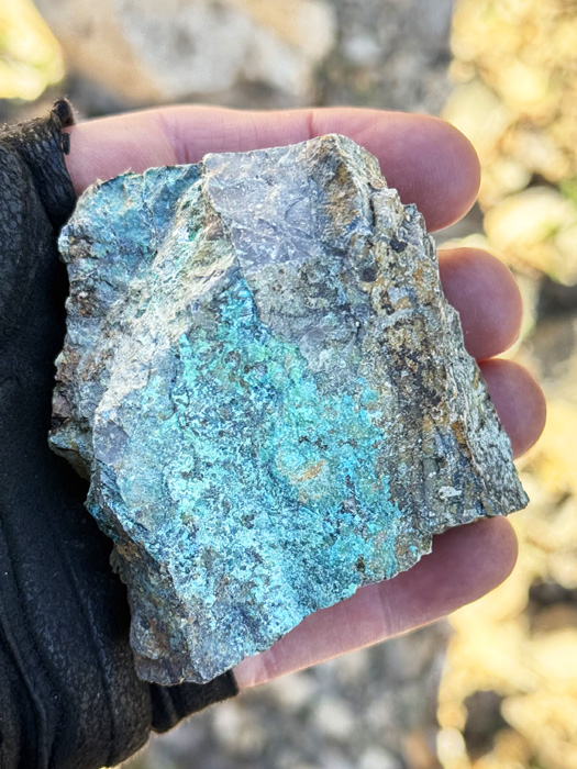 One patch of ground we passed had several specimens of chrysocolla, a blue-green copper ore (no collecting in the national park!):
