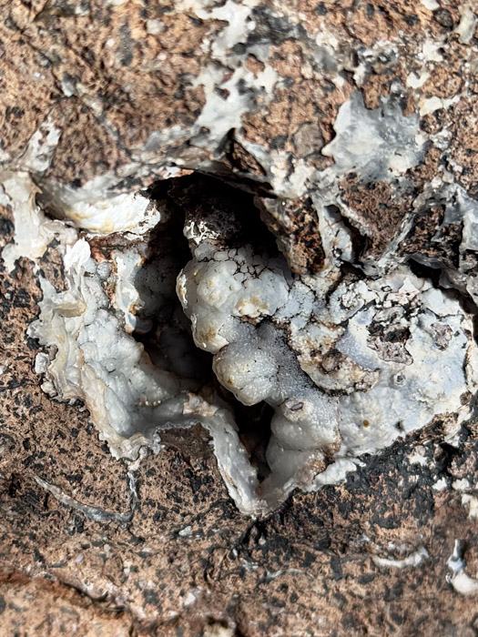 On the scamble back down, Mick pointed out some chalcedony geodes trapped in the volcanic bedrock:
