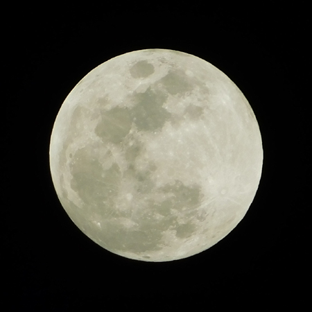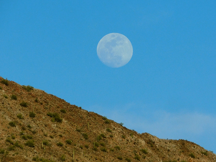 Later, the one-day-past-full moon rose, and my telephoto lens captured the craters on its edge: