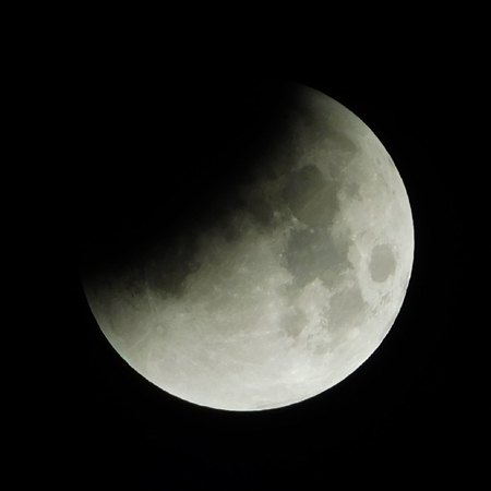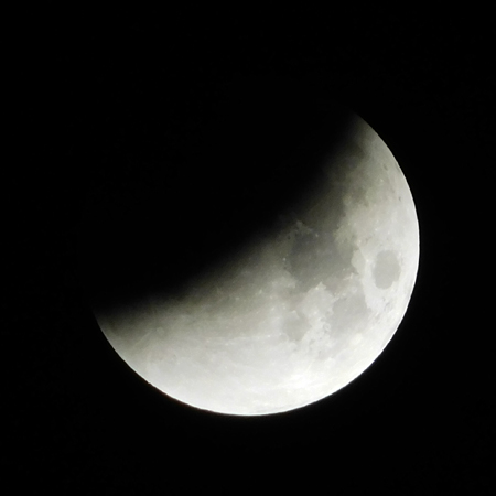 A disk of smoky quartz, the moon is weighed down by the shadow across its face. A dirty moon. I feel a cold, end-of-the-world fear, ice around the heart. As if Earth's lunge through space is not silent but suddenly deafening, as if all life has ceased and, inside this remote chasm, we are the last to know. As if from the avalanche of our own fright, we will slide into the worship of snake gods.