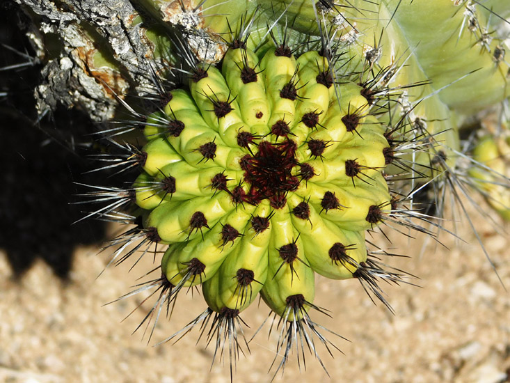 This is a straight-on view of the growing tip of an organ pipe stem; in crested specimens this center point (the
