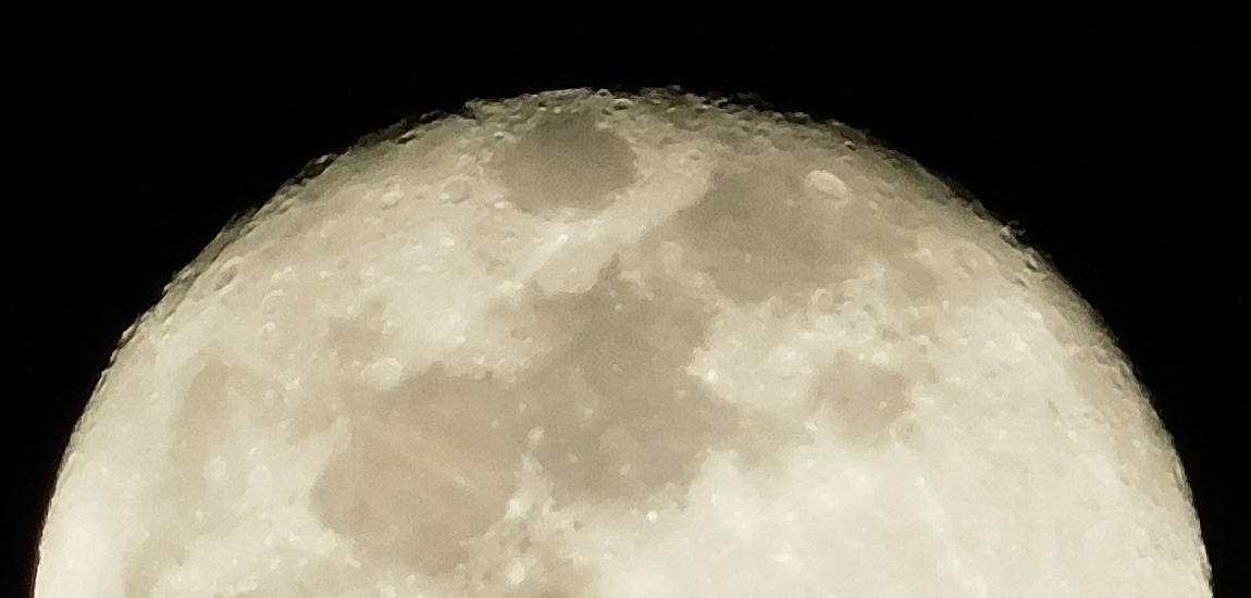 Now three days past full, the moon revealed even more craters along its upper edge:
