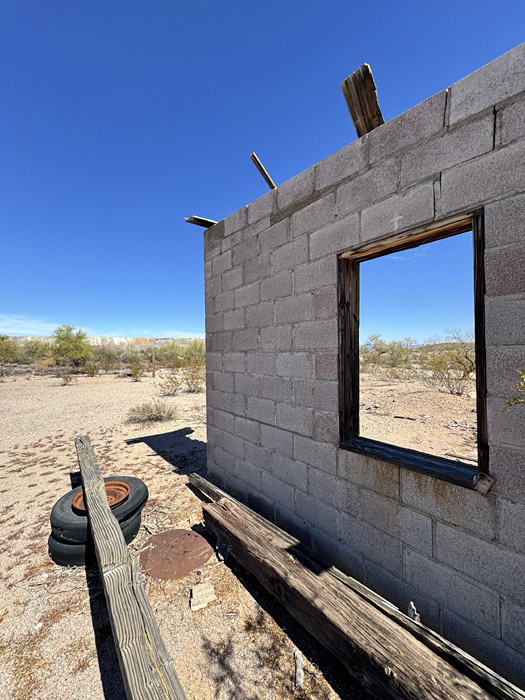 On the drive out to the main road, I stopped to check up on two roadside arm-crested saguaros. I wasn't surprised that this one was down, because the last time I checked (six years previously) the saguaro was standing but the crest was dead: