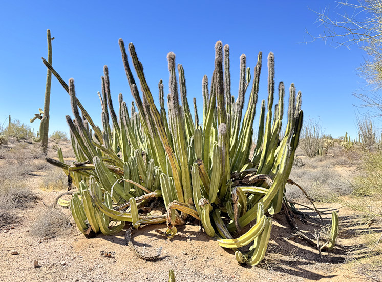 senita, a columnar cactus similar to the organ pipe but with "fuzzy" stem tips. This is an especially large specimen: